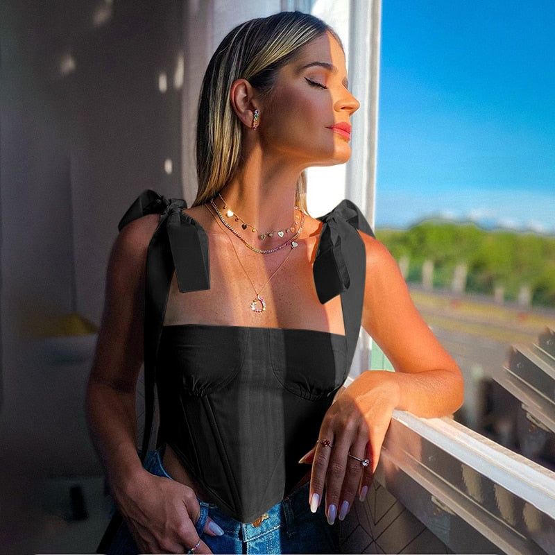 WannaThis Tank Tops Women Sleeveless Square Collar Camisole Casual Backless Crop Top Bandage Patchwork Summer Asymmetric Costume