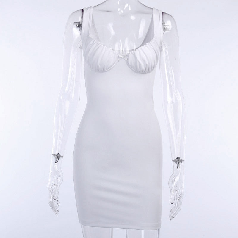 WannaThis White Short Dresses Women Skinny V-Neck Sleeveless Sexy Ruched Elastic Bodycon Fashion Summer MIni Dresses Solid Color