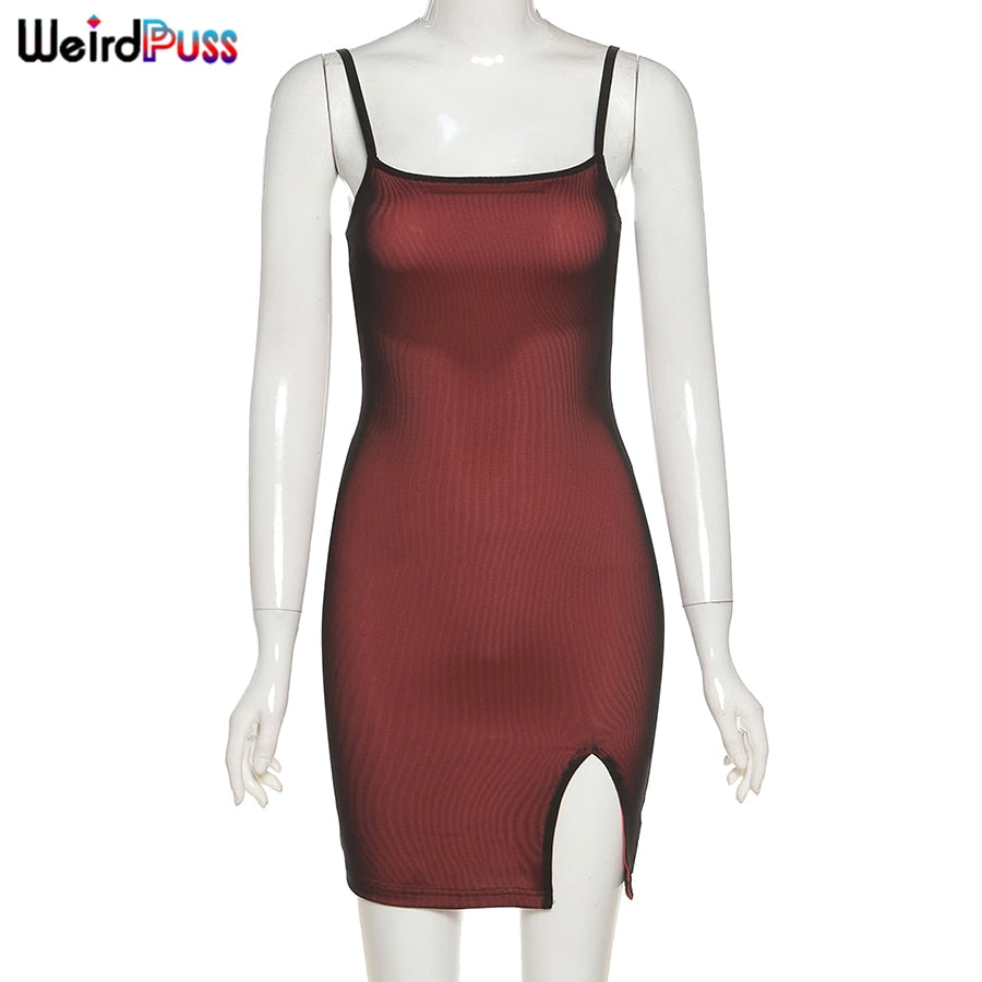 Weird Puss Mesh Double Layer Sexy Skinny Dress Women Sleeveless Party Bodycon Bandage Elastic Split Trend Clubwear Slim Outfits