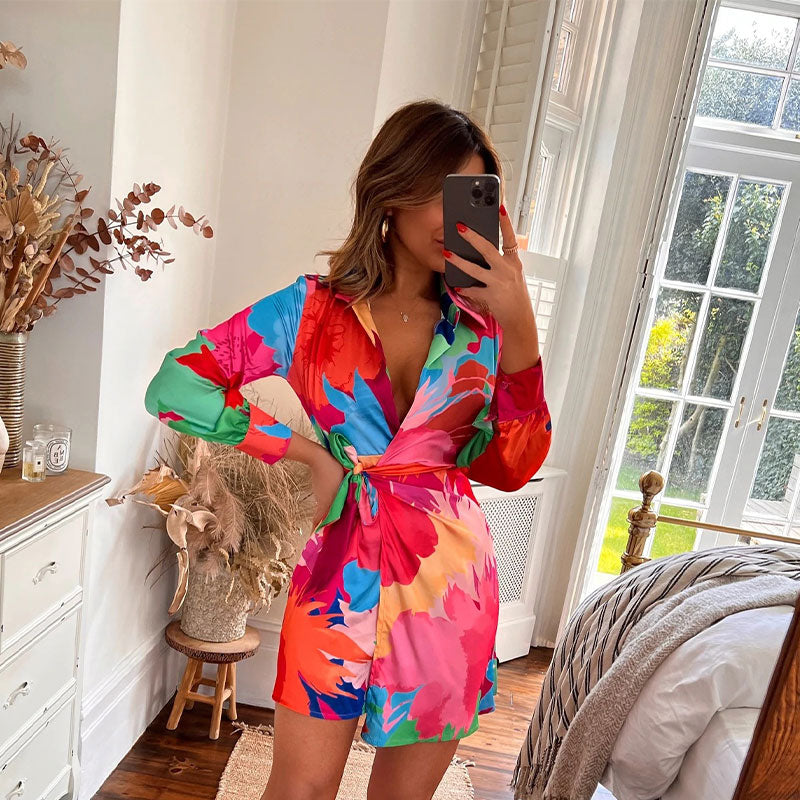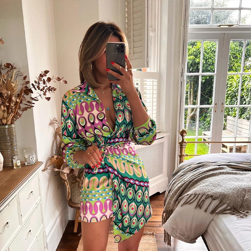 Model Number: Women Vitange Pattern Print Boho Shirt Dress